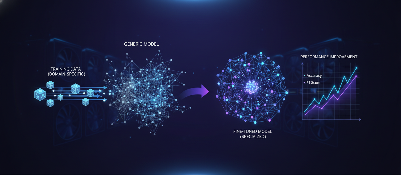 Fine-Tuning Solution: Models internalize domain knowledge, reducing context dependency by 70%