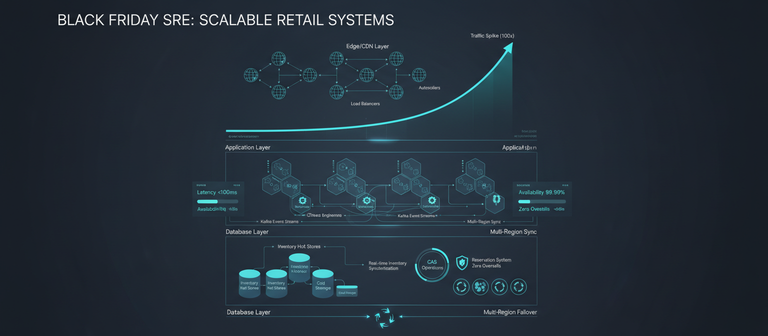 This comprehensive guide distills battle-tested patterns from the world's largest retail platforms (Amazon, Shopify, Walmart, Target, Zalando, Alibaba) into a practical, implementable framework for Site Reliability Engineering teams. We'll cover traffic modeling, multi-layer architecture, inventory system design, chaos engineering, observability, and the complete operational playbook that keeps platforms alive during the busiest shopping days of the year.